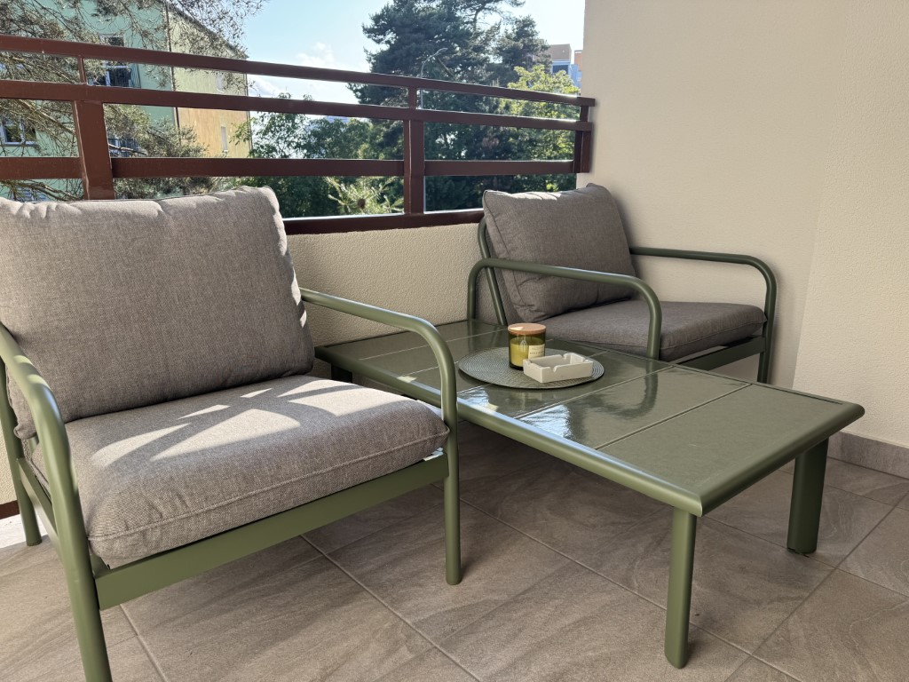 ✔️ Przytulny balkon z wygodnymi fotelami, gdzie można delektować się poranną kawą.